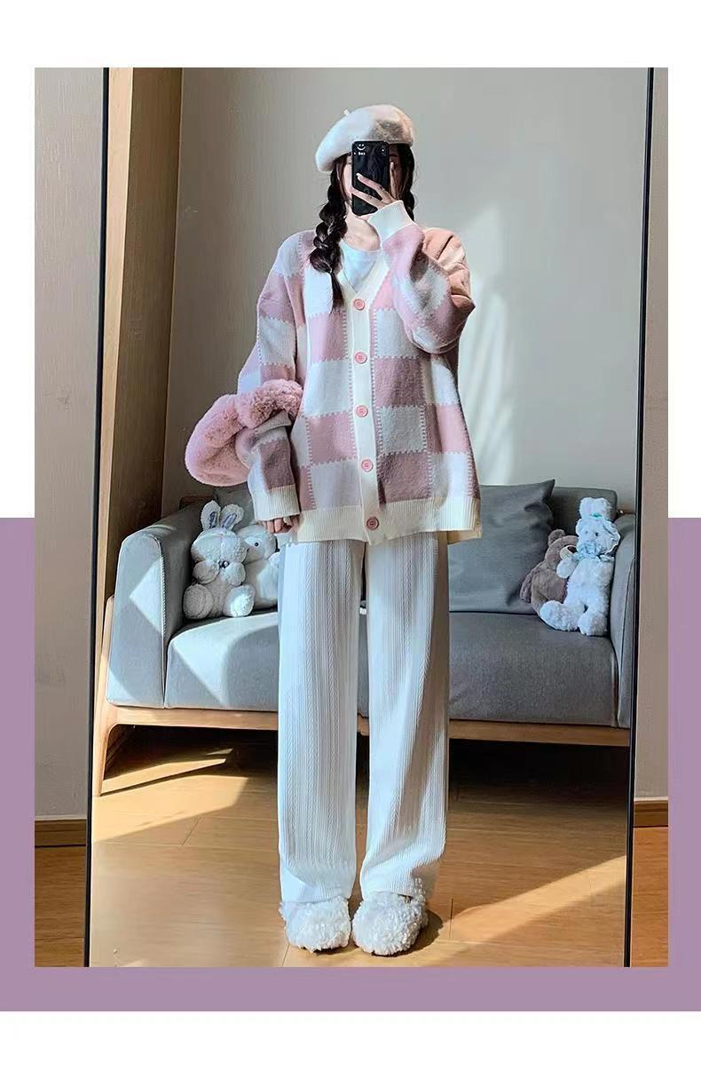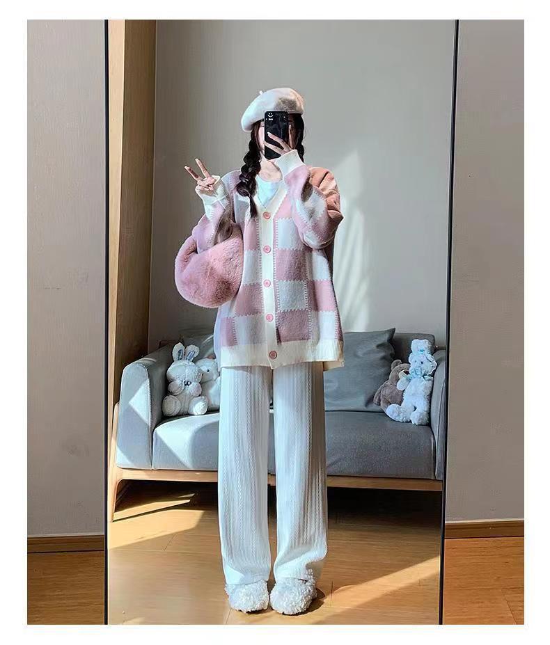 Beige Chenille Wide-Leg Pants Women's Autumn Winter 2022 New High-Waisted Casual And Velvet Wheat Grain Knitted Pants